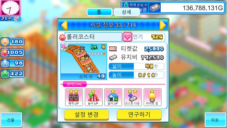 관람차와 롤러코스터를 자유롭게 건설하고 마스코트를 스카우트해서 인기 있는 퍼레이드에도 출연시킬 수 있어요.